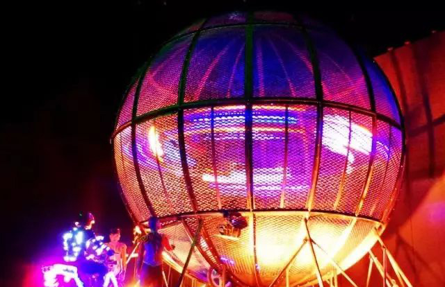 環球飛車是一場在直徑不到6米的鋼球內,交叉穿越,互相追逐,90°飛行,360°旋轉等高難度動作,兩車較小間距僅50cm,時間不能相差0.01s,心跳值狂飆,視覺效果驚悚的摩托特級秀。