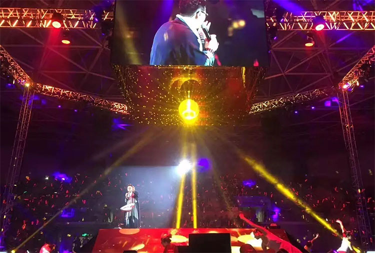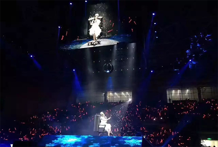 音樂會高潮部分非蘇永康和李霞兒深情對唱一首《從來不喜歡孤單一個人》莫屬了。李霞兒一身淺灰色長裙驚艷全場,盡顯女神風范!