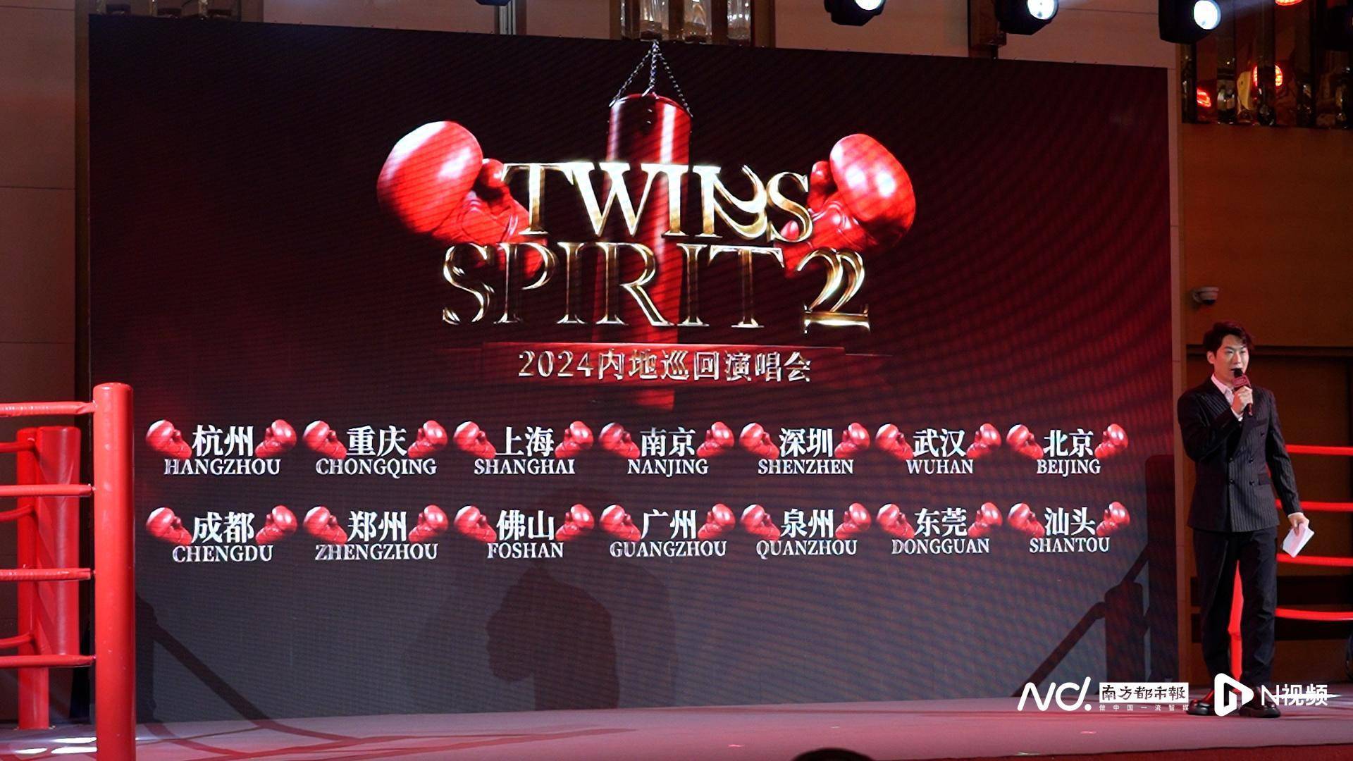 5月7日,Twins現身廣州,出席“TWINS SPIRIT 22”2024內地巡回演唱會新聞發布會。現場以拳擊手造型亮相的阿Sa和阿嬌,不上舞臺上擂臺,一言不合就開打比賽!幸有Mani霍汶希驚喜現身擔任裁判控場,宣布Twins拍住上,冠軍打孖上。